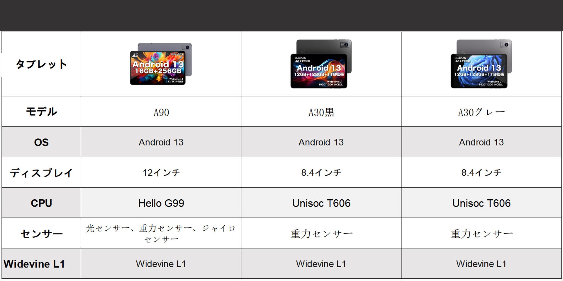 A30タブレットPC グレー購入リンク:https://www.amazon.co.jp/dp/B0CLKMCWHJ