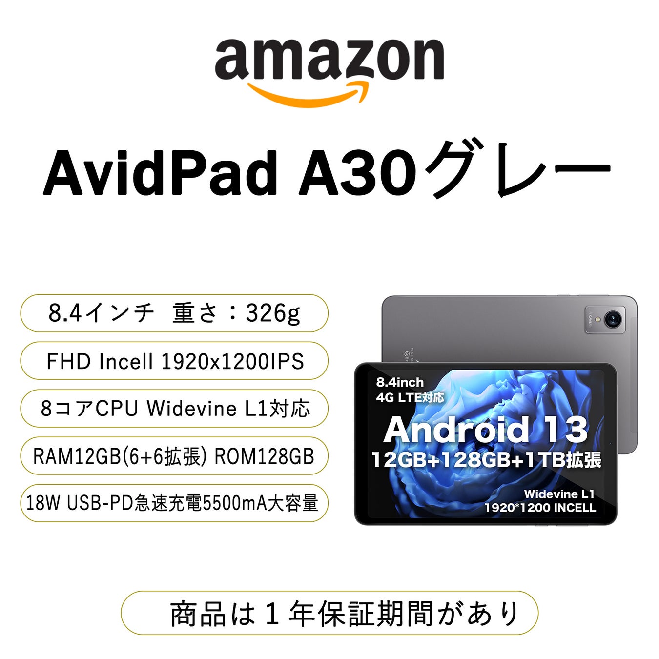 大人気の  8.4インチ Avidpad A30がさらにお買い得に!(Android 13 タブレット8.4インチFHD Incell 1920x1200IPS RAM12GB(6+6拡張) ROM128GB 8コアCPU Widevine L1対応SIM WiFi モデル)