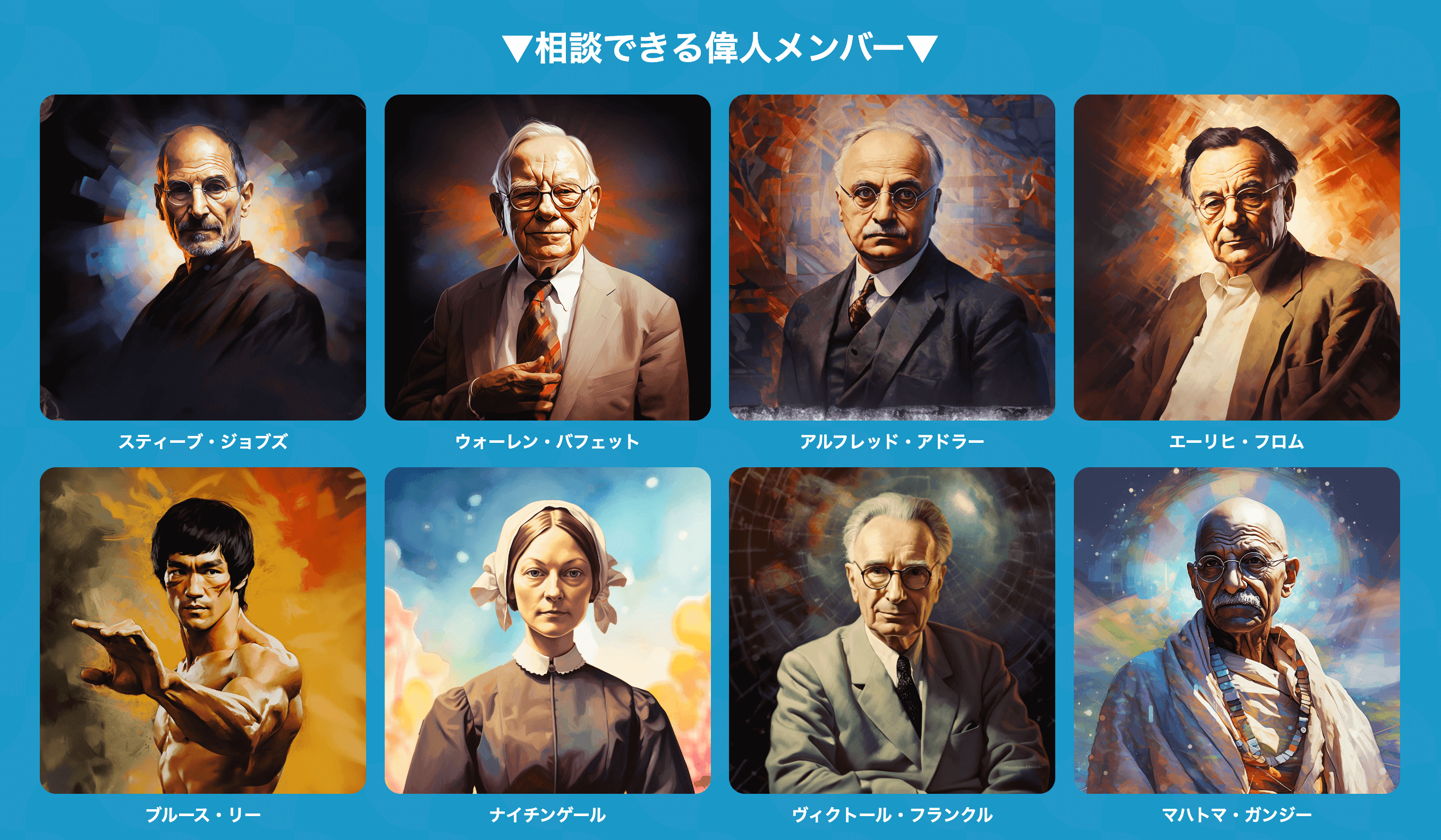 ユーザーは様々な人生の悩みや疑問に対して、偉人たちの知恵を借りて解決のヒントを得ることができます。