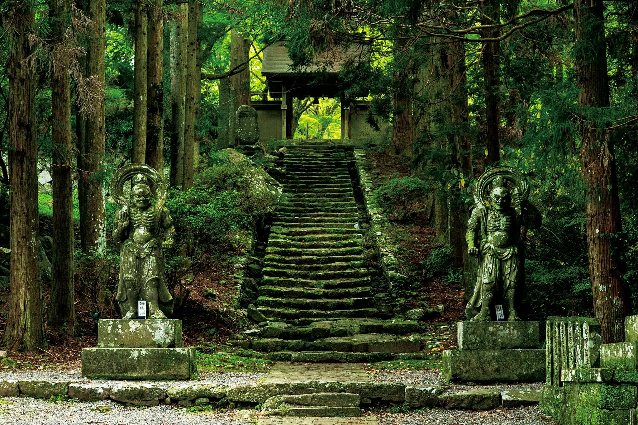 大分県の北東部、国東半島のほぼ東半分を占める国東市は、北は周防灘、東は伊予灘に面しています。半島の中央部に位置する両子山・文殊山を中心とした放射状の谷からなる特異な地形で両子山周辺は瀬戸内海国立公園に、その周辺及び海岸線は国東半島県立自然公園に指定されています。古くから神仏習合の六郷満山文化が発展した地として、「仏の里くにさき」と呼ばれています。