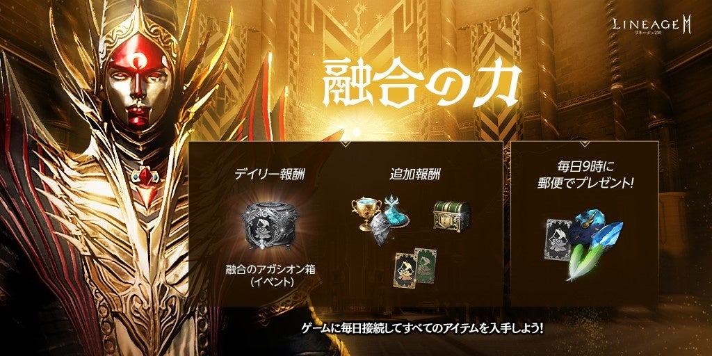 さらに、毎日9時にゲーム内郵便にて、「アインハザードの祝福」1,500のほか「黎明の寺院の時間補充石(イベント)」、「アガシオン獲得券(6回)(イベント)」などのアイテムをお送りします。