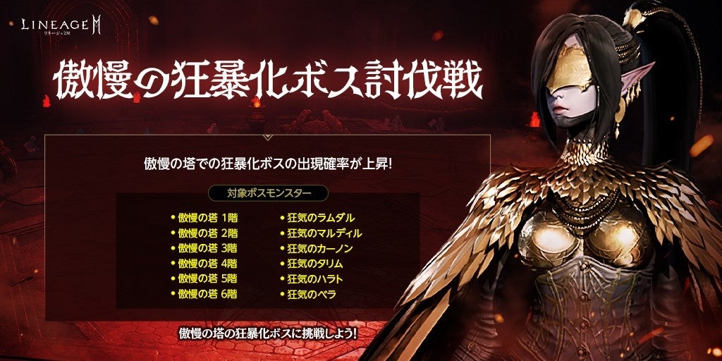 期間中、ワールド ダンジョン「傲慢の塔」での狂暴化ボス モンスターの出現率が上昇します。