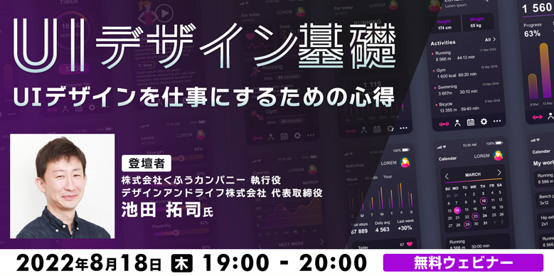 講師を務めるのは、UIデザイン関連の書籍を出版されている池田拓司氏です。第1回では「UIデザインを仕事にするための心得」をテーマに、池田氏がこれまで実際に手掛けてきたサービスのデザイン事例などをもとに、「UIデザインとは何か?」をわかりやすくお話していただきます。ご興味をお持ちの方はぜひご参加ください。