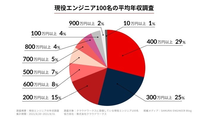 [1]現役エンジニア100名の平均年収は「400万円以上」が最多の29%