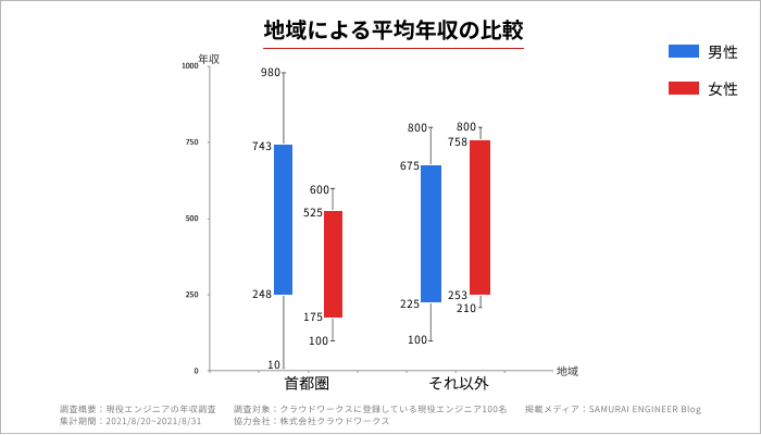 [3]地域別のエンジニアの平均年収は「首都圏以外」かつ「女性」が最高値