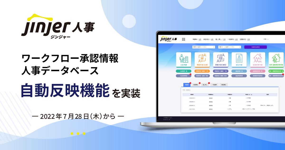※「人事データベース自動反映機能」のご利用には、「ジンジャーワークフロー」のオプション契約が必要です。