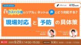本セミナーでは、「現場を守る」リアルのカスハラ対応と、「ブランドを守る」SNS時代の評判管理を2軸で解説します。さらに、両社によるパネルディスカッションを通じて、部門を超えた全社的な対策のヒントをお届けします。