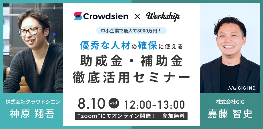 そこで今回フリーランス・副業人材と企業を結ぶマッチングサービス「Workship」と、『誰もが自由に創造できる社会へ』をビジョンに掲げ企業の助成金・補助金の活用を支援している株式会社クラウドシエンが、近年の人材採用に関するトレンドの解説と共に、人材採用に対して活用できる公的支援について解説していきます。