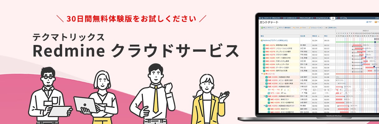 「テクマトリックス Redmine クラウドサービス」の詳細・体験版はこちら