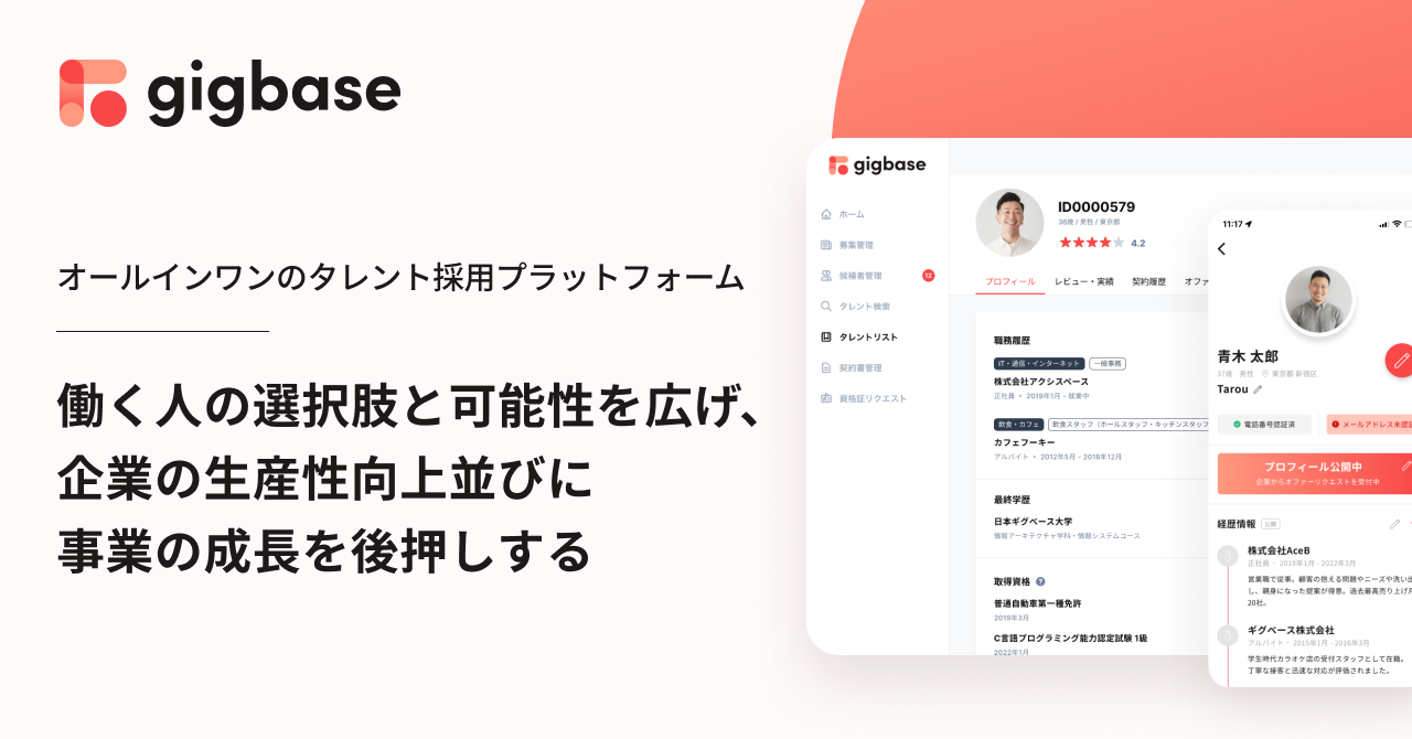 タレント採用プラットフォーム「gigbase」: https://gigbase.jp/