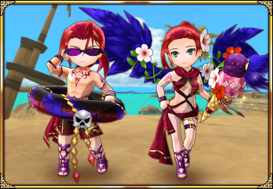 ① 「エレメンタルナイツR」ゲーム内で夏らしい風景やおしゃれを装備してスクリーンショットを撮影