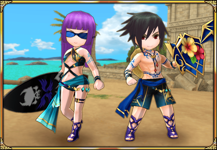 ① 「エレメンタルナイツR」ゲーム内で夏らしい風景やおしゃれを装備してスクリーンショットを撮影