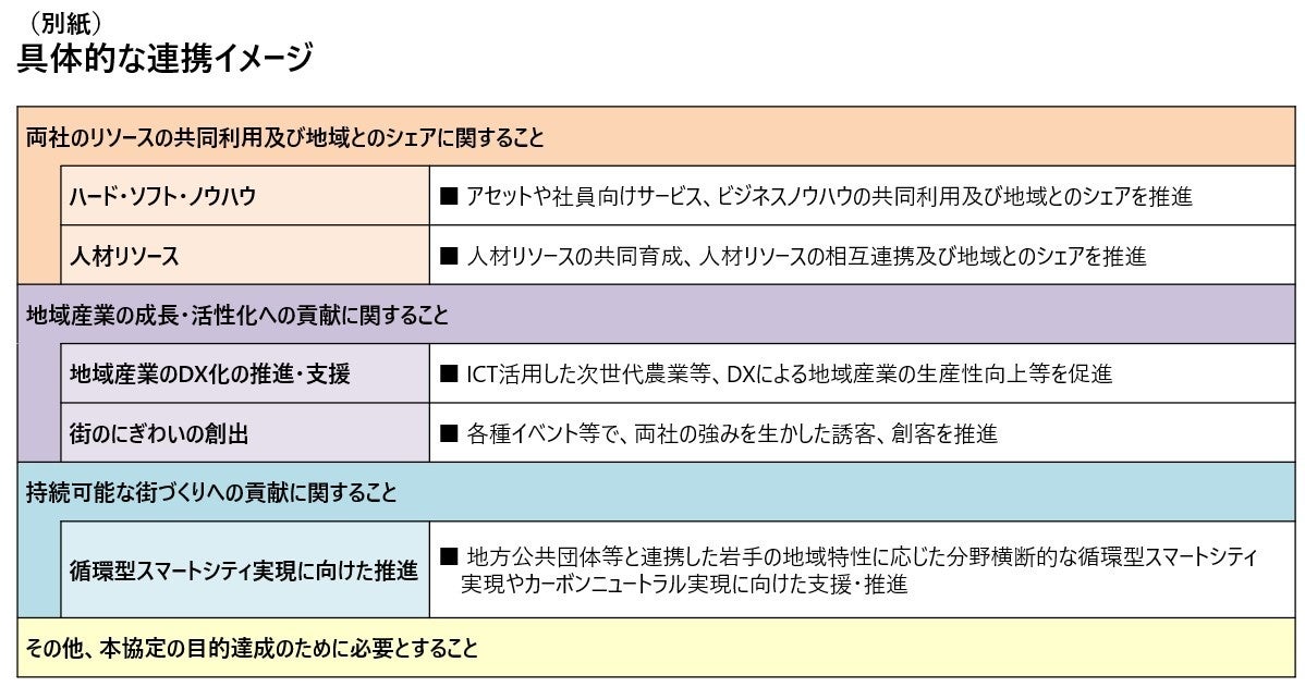 岩手銀行とNTT東日本が緊密に相互連携し、保有するリソースを活用した創造的な協働の 取り組みを展開することにより、地域が抱える諸課題に迅速かつ適切に対応し、地域経済の活性化や持続可能な地域社会の実現を図ることを目的とする