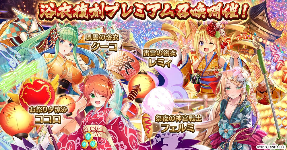 ※上記ユニットは『浴衣プレミアム召喚』からのみ期間限定で出現します。また、今後の更新にて再度出現する場合があります。