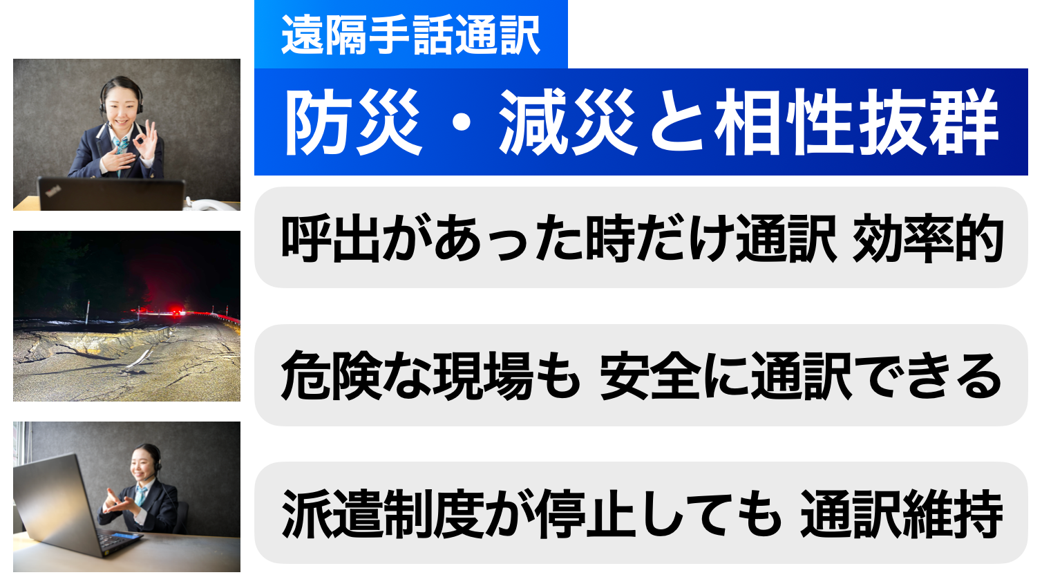 災害時の情報格差をなくすため、暮らしのあらゆる場面で遠隔通訳の併用が浸透するよう整備を推し進め、災害時に”伝え合える安心”を築いてまいります。」