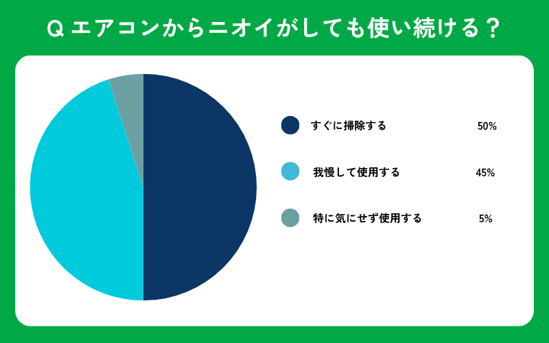 ・8割ほどの人がエアコンのニオイが気になったことがあるが、4割以上の人はニオイがしてもすぐに対処せず「我慢して使用し続ける」。
