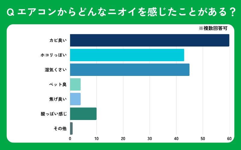 エアコンからどんなニオイを感じたことがありますか?(複数選択可能)