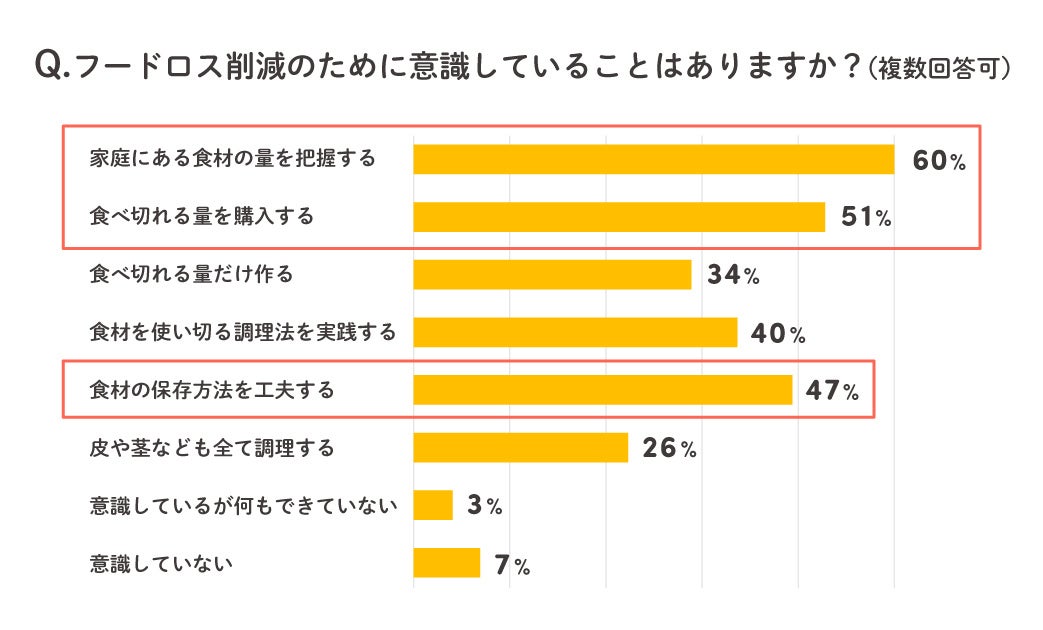 ・「家庭にある食材の量を把握」し「食べられる量だけ買う」など、食材を購入する際に削減を意識する傾向