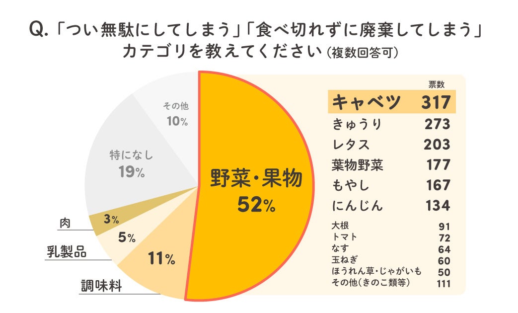 ・つい無駄にしてしまう食材の第1位がキャベツ、2位がキュウリ、3位がレタス