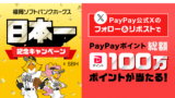 福岡ソフトバンクホークス 日本一 記念キャンペーン - キャッシュレス決済のPayPay PayPay公式Xのフォロー&リポストでPayPayポイント 総額100万ポイントが当たる! |