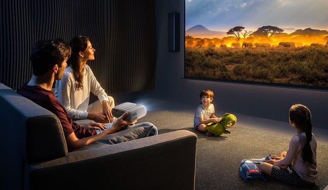 また、パソコンやスマートフォンなどと繋げば、映像コンテンツなんかも投写できるので、家の中での“観る”という体験が変わります。
