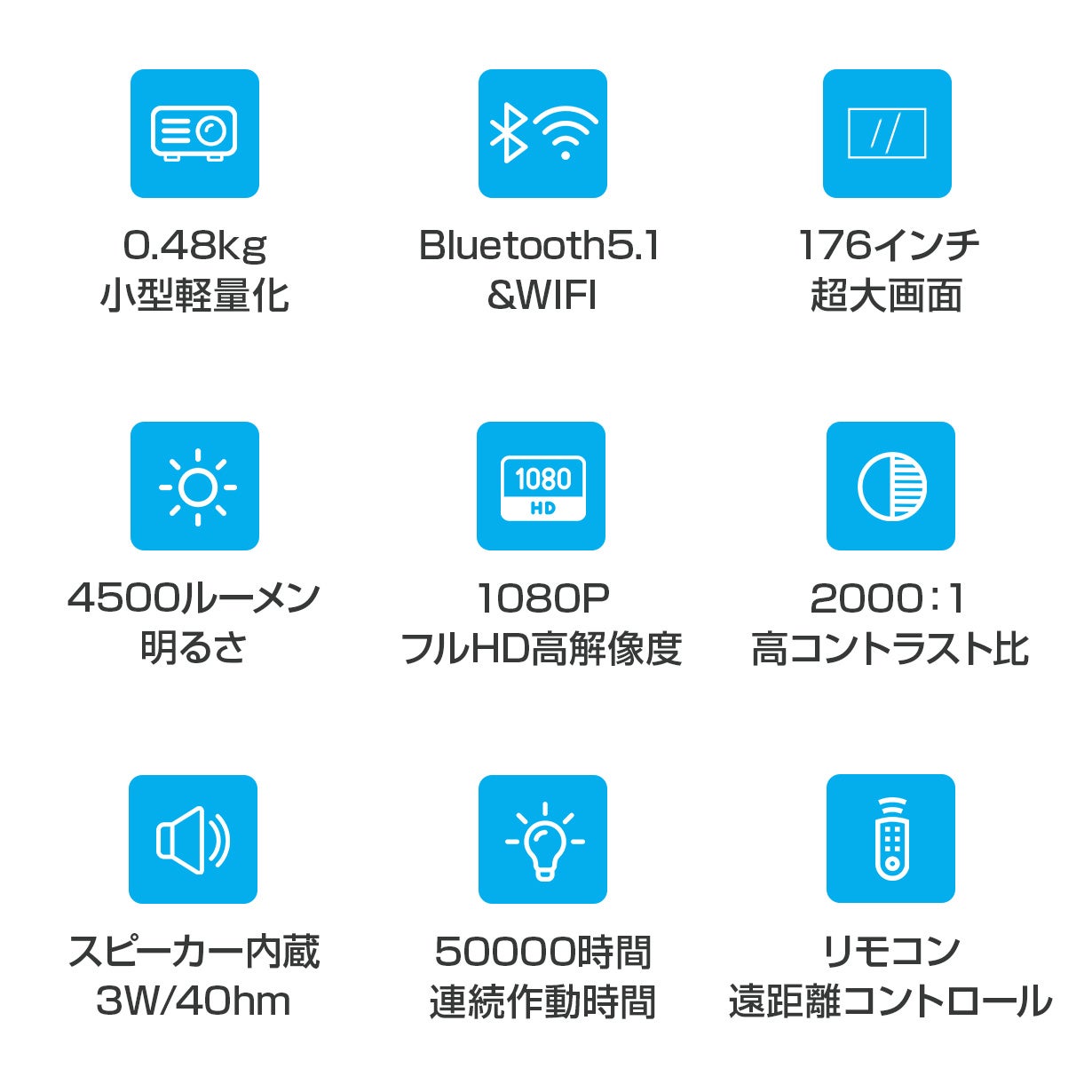超小型E08プロジェクターは光源輝度4500ルーメンの高輝度光源を採用しているので、クリアでメリハリのある映像表現が楽しめるです。