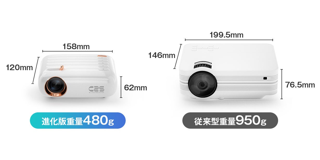 従来プロジェクターのイメージには重い・高い・でかい!こんなサイズとデザインのプロジェクターは見たことない!持ち運びやすいので、寝室やリビングなどどこでも使えます。