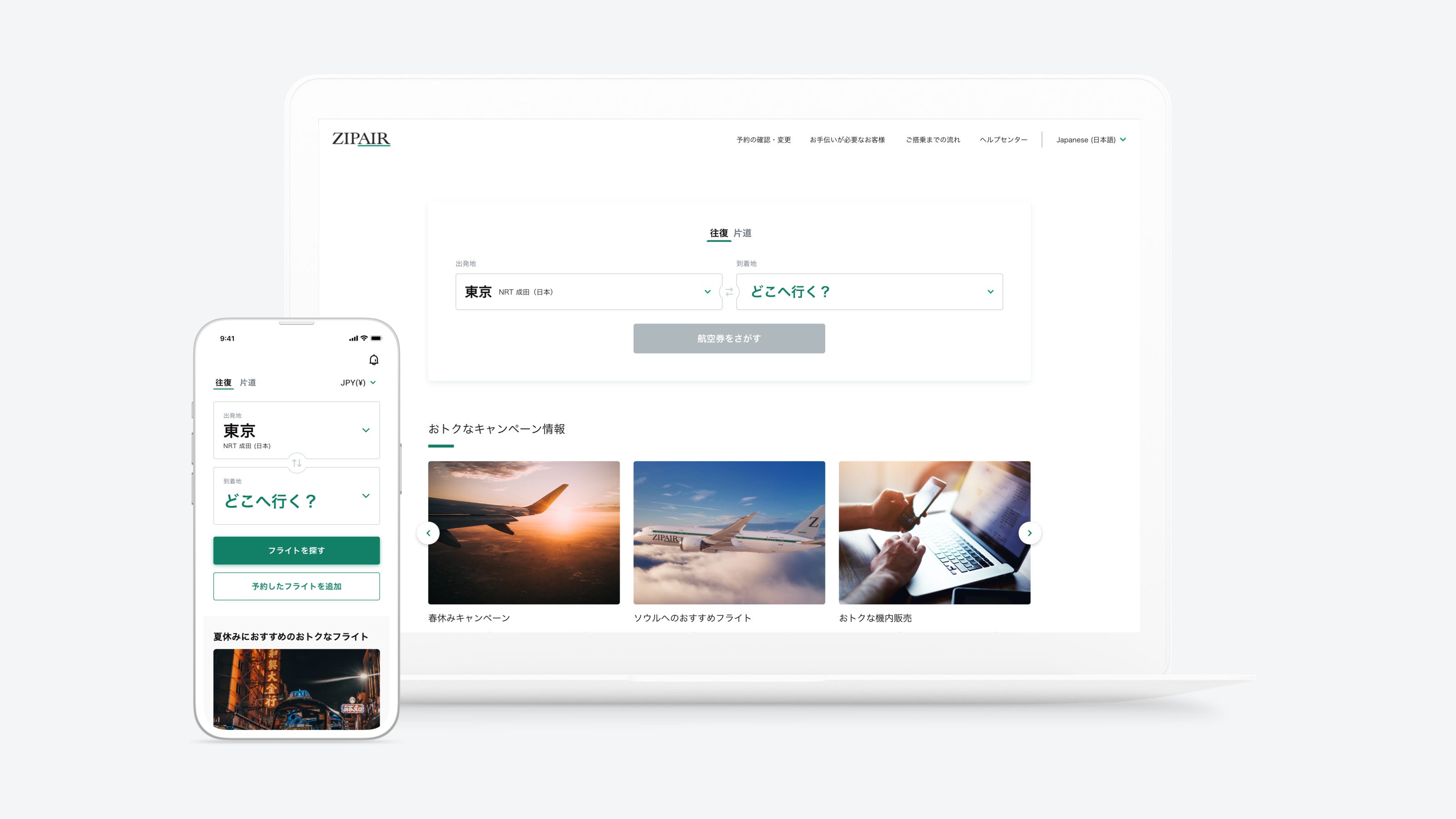アプリならではのパーソナライズした情報、搭乗前後の案内に加え、お知らせやキャンペーン情報などwebサイト側と共通の情報も表示。