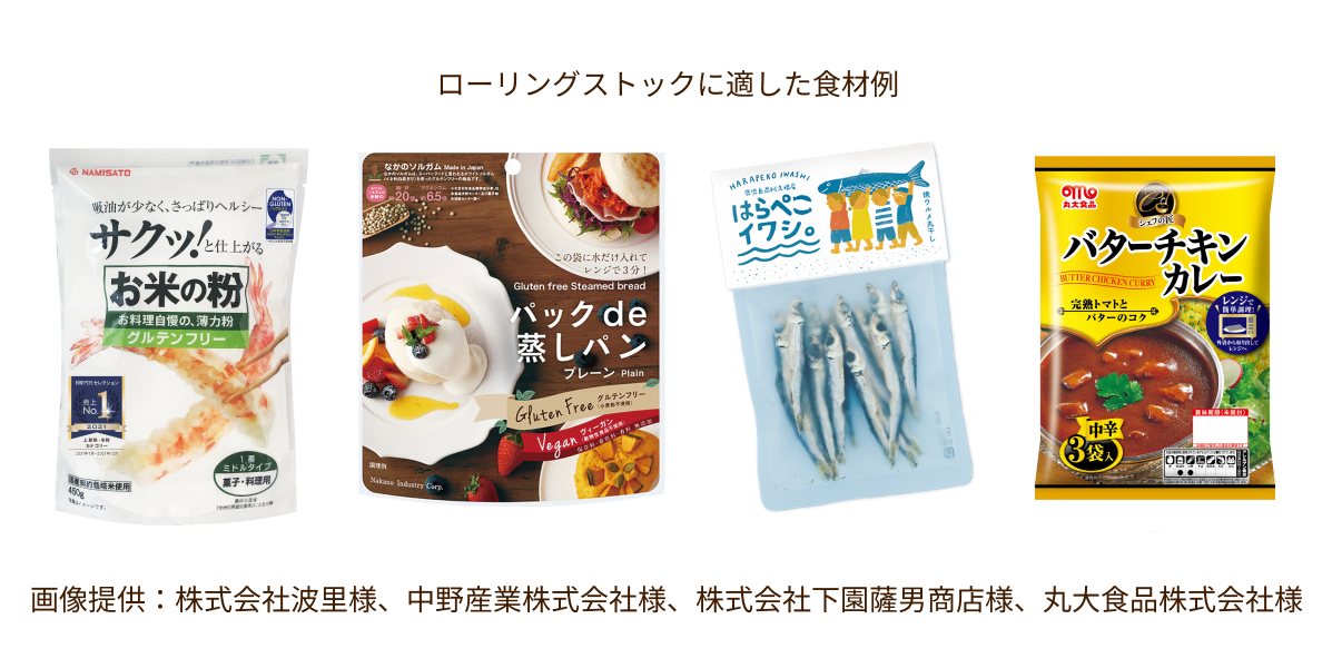 ローリングストックは、普段食べている食品を少し多めに買い置きすることから始められる、簡単な食品ストック方法です。ぜひ「おうちで#ローリングストック」を楽しみながら、ローリングストックを実践し、「食べて・買って・蓄える」ことで無理なく普段の生活に「備え」を取り入れていただくことを期待します。