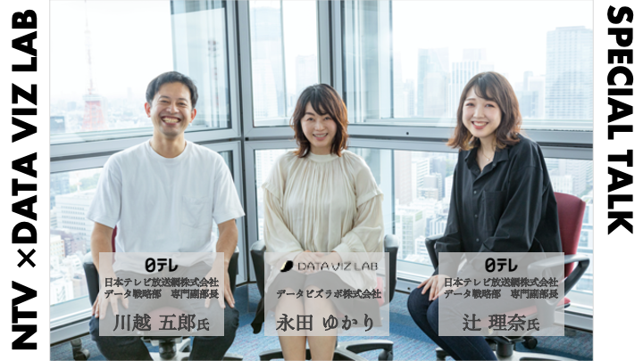 全社的なデータ活用文化の醸成に取り組まれている日本テレビ放送網株式会社様。データ戦略部専門副部長の川越様と辻様に、実際にプロジェクトに携わったデータビズラボのメンバーの一部よりインタビューをさせていただきました。