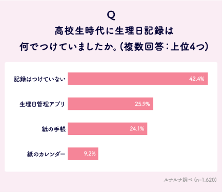 Q. 中学生時代に生理日記録は何でつけていましたか。(複数回答:上位4つ)/Q. 高校生時代に生理日記録は何でつけていましたか。 (複数回答:上位4つ)