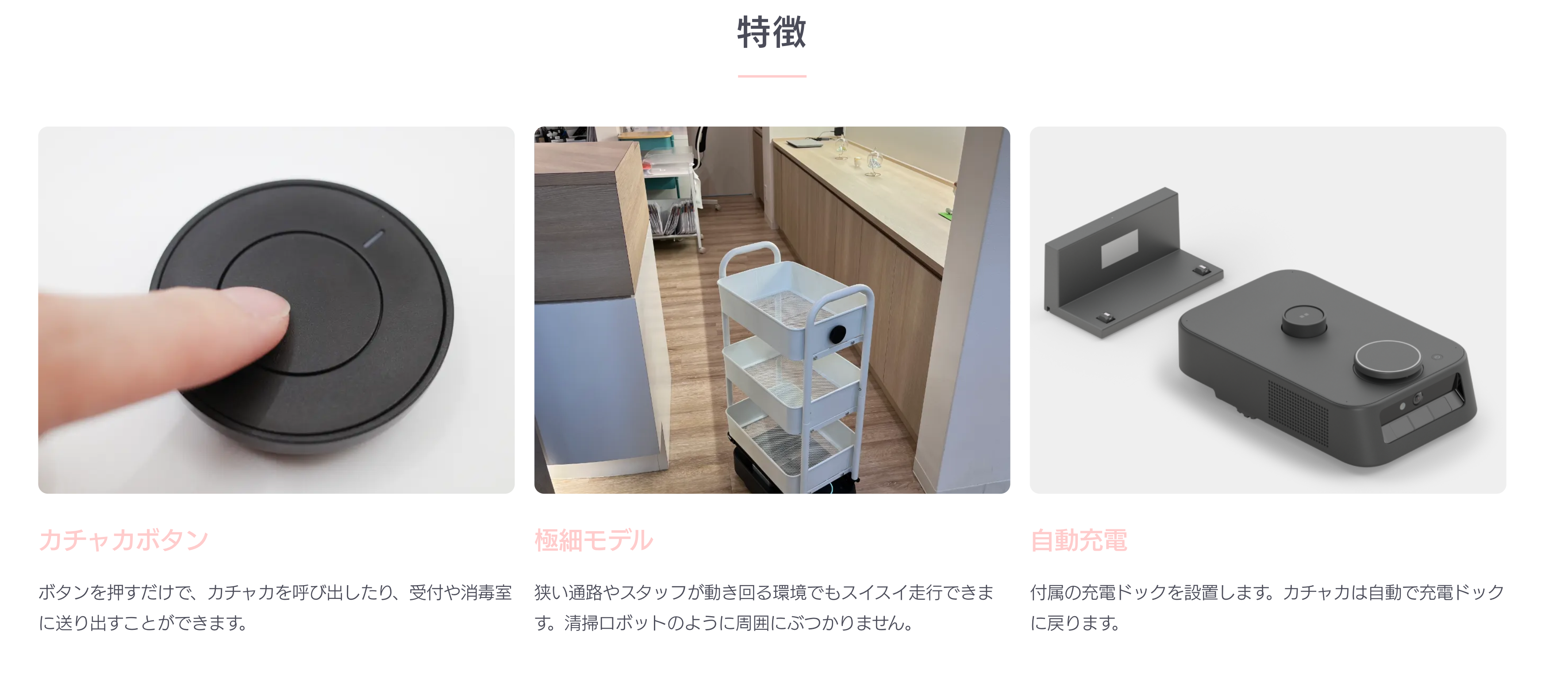 「カチャカスリム」は、クリニックをはじめとする医療現場だけでなく、オフィスや研究施設など狭小空間での物品搬送にも応用可能です。今後は、複数台の統合管理を可能にする「カチャカフリートマネージャー」との連携により、さらなる業務効率化を目指します。