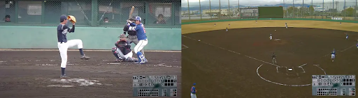 野球場のキャッチャー側とセンター側2台のAIカメラを使用した複数アングル切り替えによる撮影体制にすることで、従来のSTADIUM TUBEシリーズを使った1台のみでの撮影よりも、より本格的で臨場感のある映像の中継が可能になりました。
