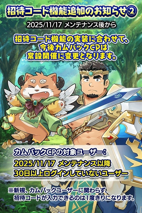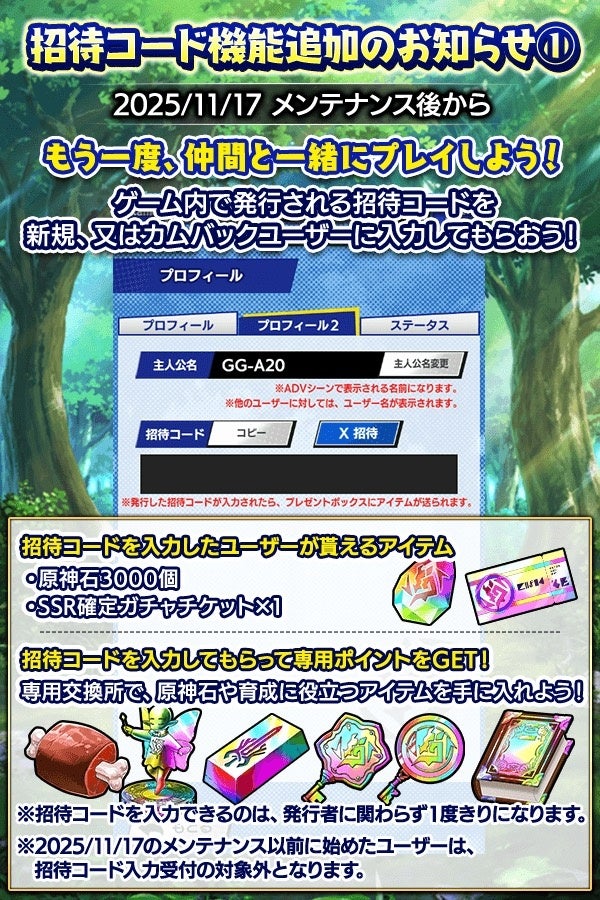 ■もう一度 仲間と一緒にプレイしよう!「招待コード機能」追加!