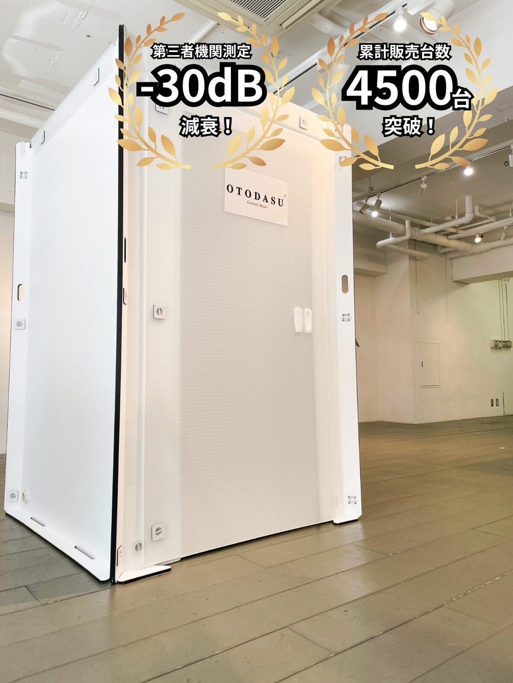 「OTODASUⅡ」は、楽器練習・歌・配信・ゲーム実況・オンライン会議など、多目的に利用できる 自宅用の組立式防音室です。“置くだけ・組み立てるだけ” の手軽さとスタイリッシュな外観が評価され、これまで VTuber・声優・ミュージシャン・在宅ワーカー など、多様なユーザーに支持されています。