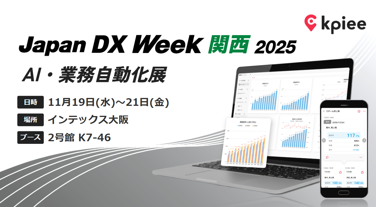 株式会社データX(本社:東京都新宿区、代表取締役社長:安部泰洋) が提供する経営管理システム「kpiee」は、2025年11月19日(水)〜21日(金)にインテックス大阪にて開催される関西最大級のDX総合展「Japan DX Week【関西】」に出展いたします。