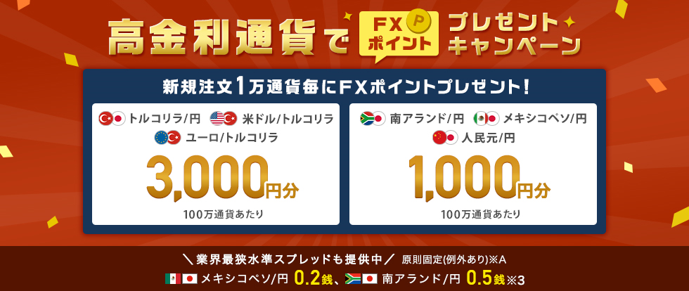店頭FX(外国為替保証金取引)における新興国通貨取引のリスクにつきましては、下記ページをご覧ください。