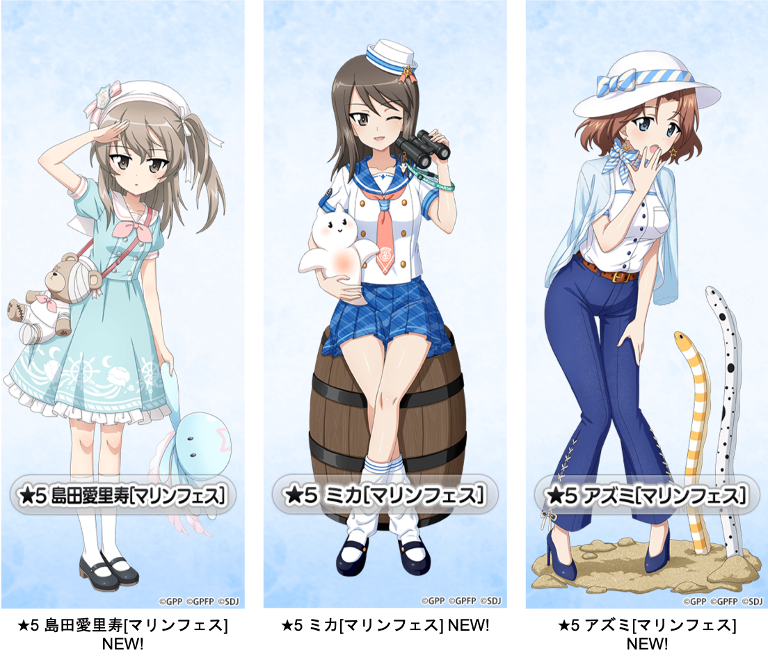 本ガチャには、マリンフェス衣装の西住みほや西住まほなどが登場いたします。ぜひご確認ください。