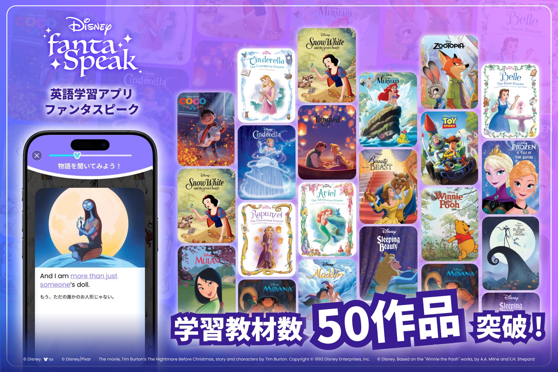 ・ディズニーやピクサーの作品で学べる英語学習アプリ「ファンタスピーク」が 学習教材50作品を突破