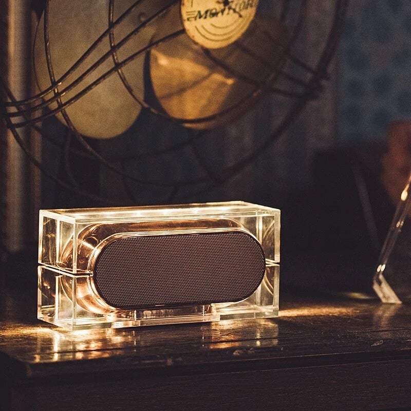 3段階に調節可能なライト機能でベッドルームのインテリアにも。アクリルで覆われたおしゃれな見た目が特徴の「AULAスピーカー」は、3段階で調節できるLEDライトを搭載。