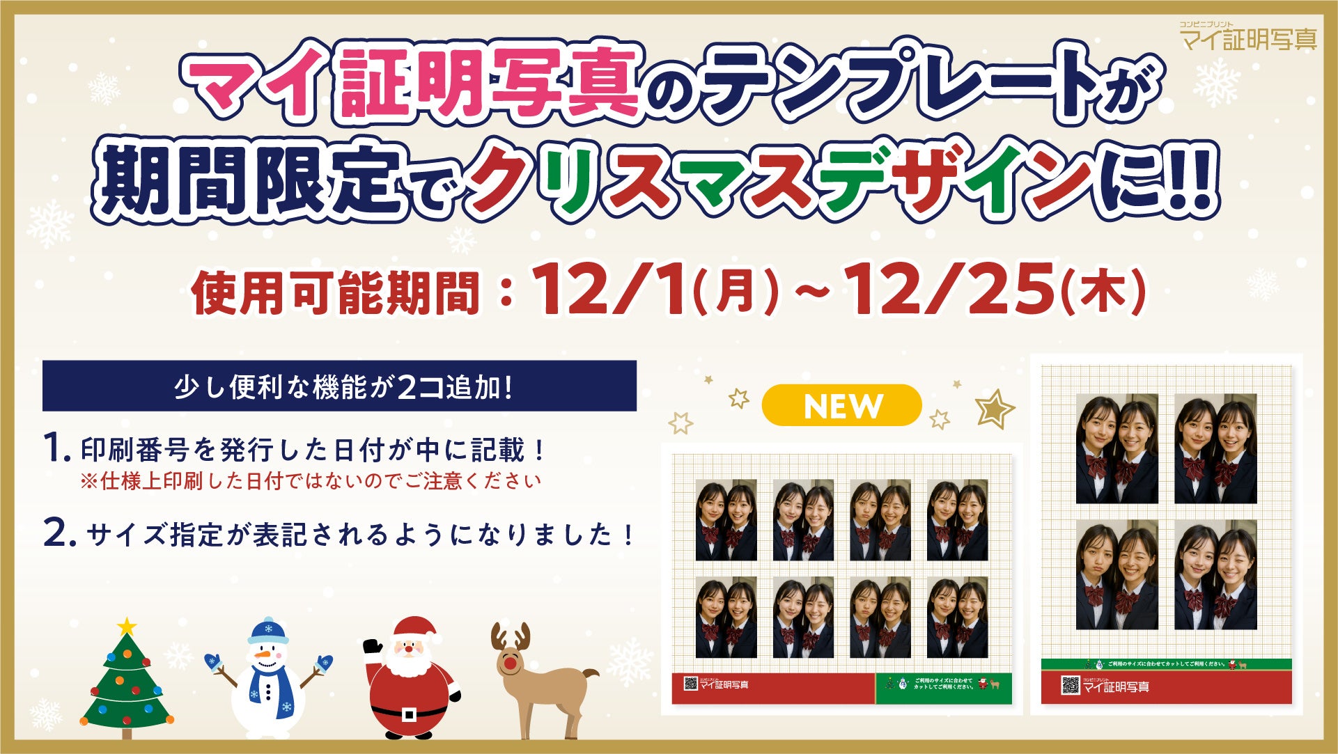 『マイ証明写真』が期間限定で“クリスマス台紙”印刷に対応!証明写真の“更新忘れ”を防ぐ仕組みも追加!