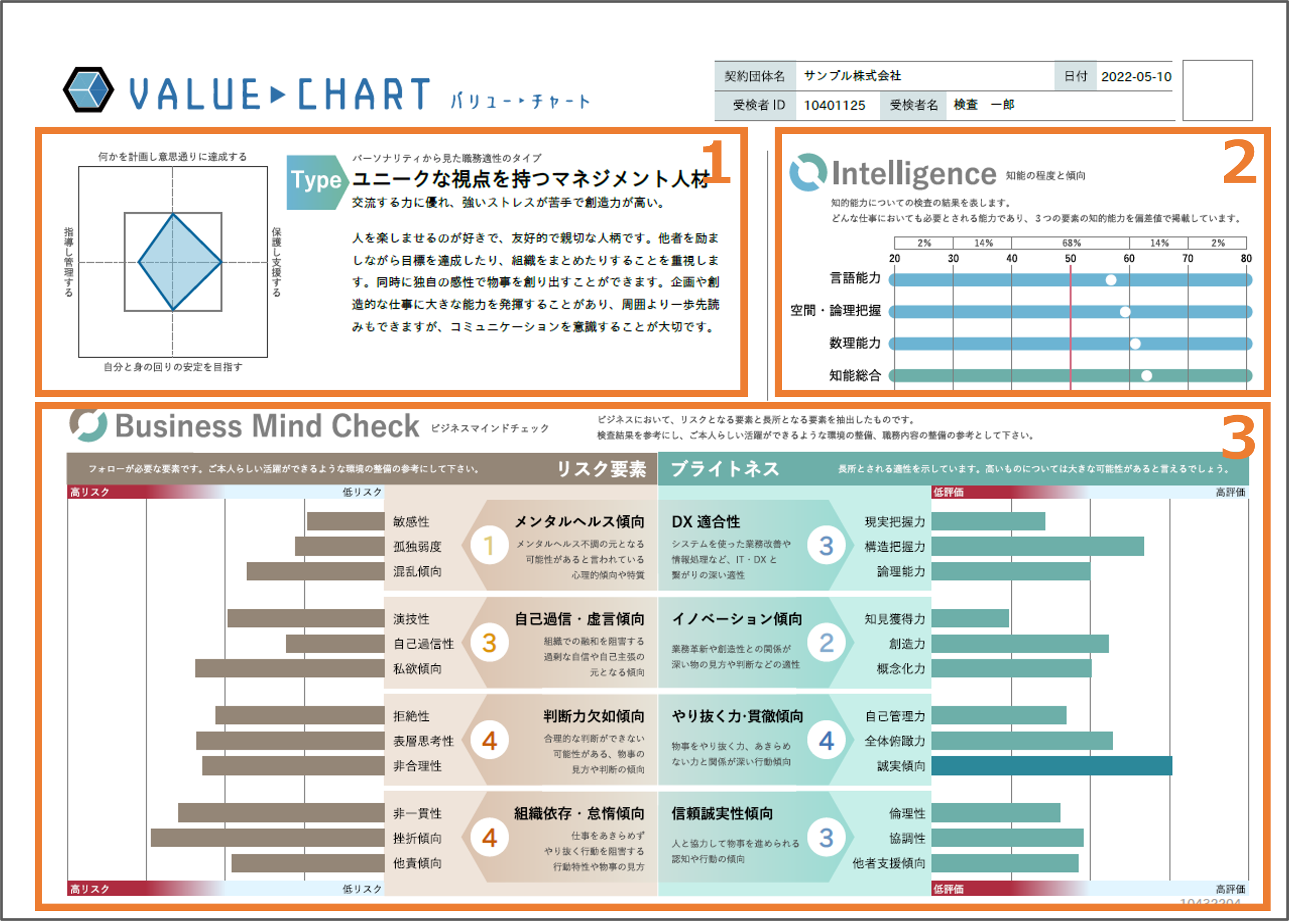 ● 職種別に「ビジネスマインド適性/不適性」が把握できる「VALUE-CHART(バリューチャート)」