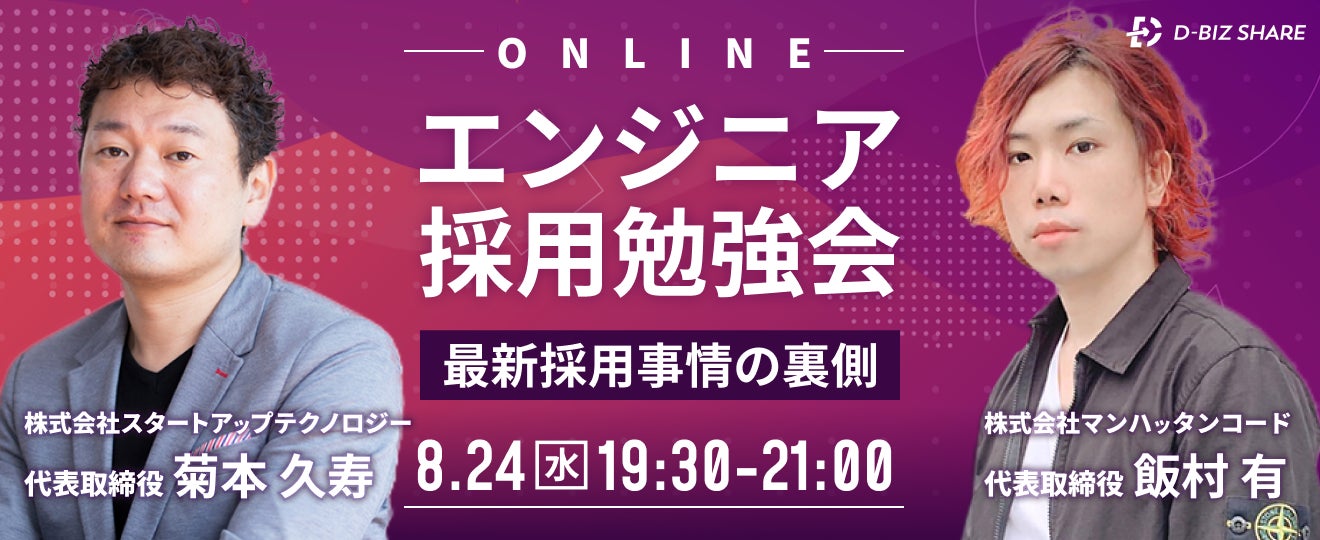 D-BIZ SHAREでは、8月24日の19:30〜21:00にエンジニアの採用ナレッジをシェアするための勉強会を開催いたします。