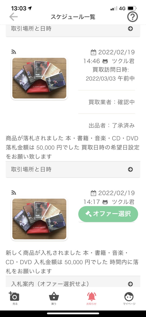 無料のメンバー登録を完了させると、すぐに出品と、買取が行えます。