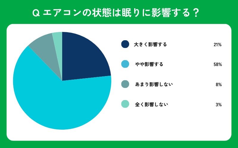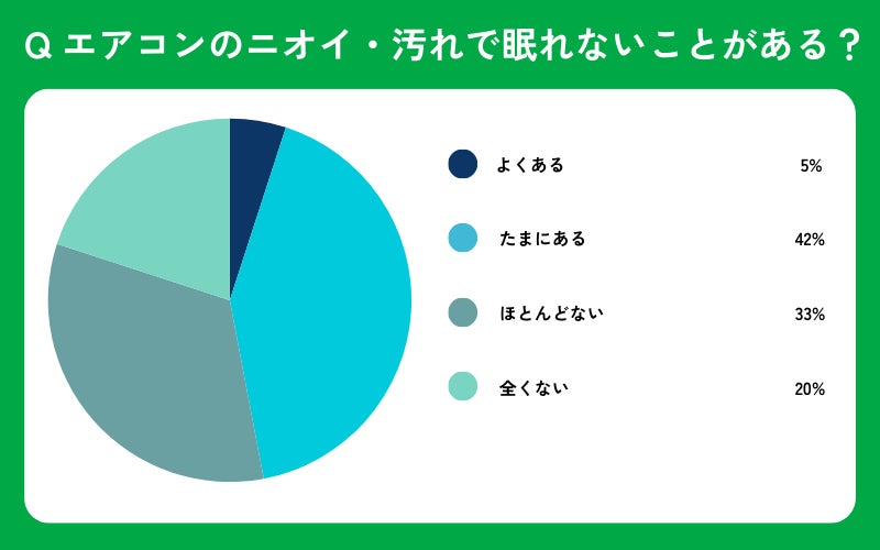 • 8割近くがエアコンの状態が睡眠に影響すると感じており、ニオイや汚れが気になって眠れないほどになることもある。