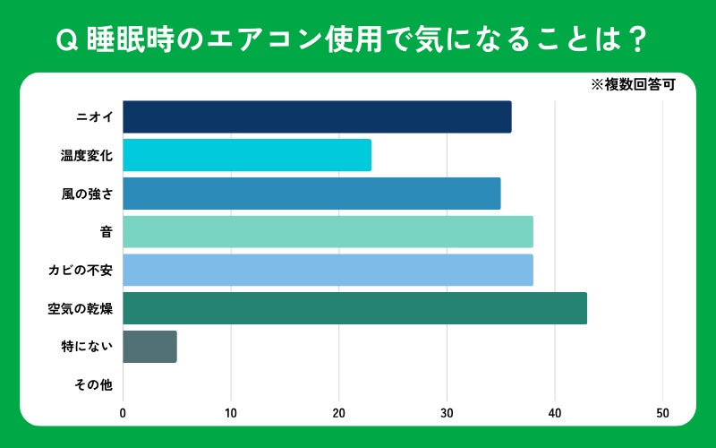 睡眠時のエアコン使用で気になることは何ですか?(複数選択可能)