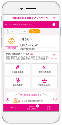 山形県米沢市に採用された『米沢市子育て支援アプリ』は、スマートフォン・タブレット端末・PCに対応したサービスで、妊産婦と子どもの健康データの記録・管理や予防接種のスケジュール管理、出産・育児に関するアドバイスの提供、離れた地域に住む祖父母など家族との共有機能や、市が配信する地域の情報をお知らせするなど、育児や仕事に忙しい母親や父親を助けてくれる便利な機能が充実しています。