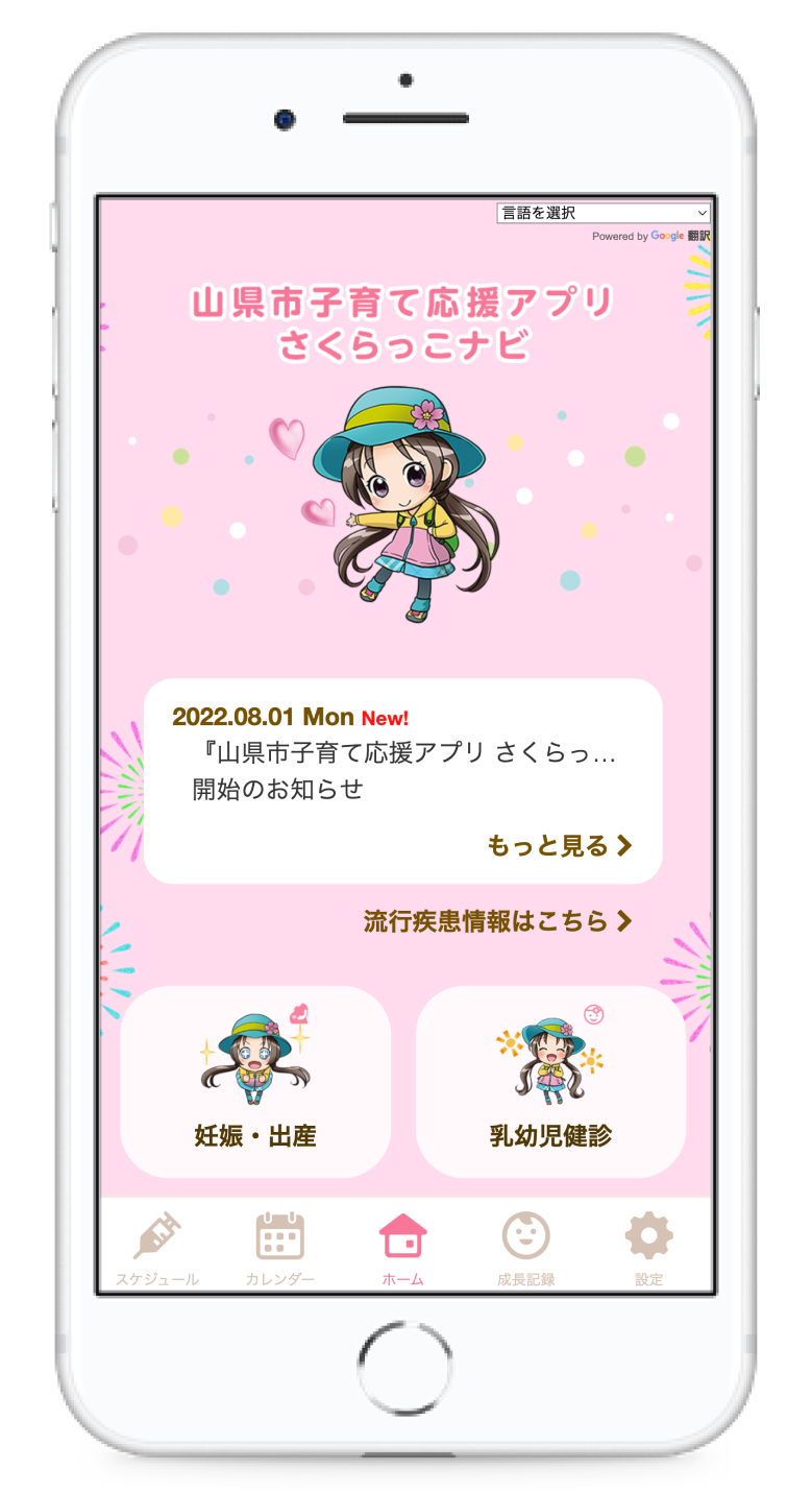 子育てする方を応援したい!という思いから「山県市子育て応援アプリ さくらっこナビ」と命名しました。トップページには、地域の皆様にも馴染み深い山県市名山めぐりイメージキャラクター「山県さくら」が登場。山県市らしさが詰まった、こだわりのデザインでお届けします。