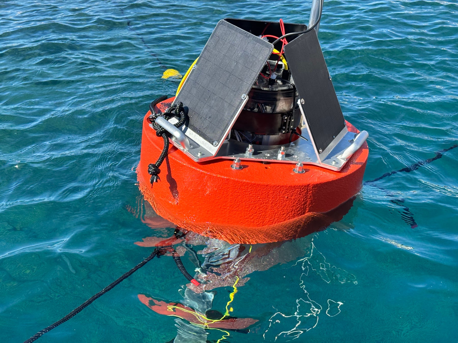 カメラや各種環境センサーを搭載可能な海洋IoTブイ 水中カメラによる映像・画像の取得 水温、溶存酸素、塩分、濁度、クロロフィル、流向・流速などの環境データの取得 太陽光パネルを搭載し、長期間の連続運用が可能 Webアプリ上でリアルタイムにデータを確認(スマートフォン・PC・タブレット対応)