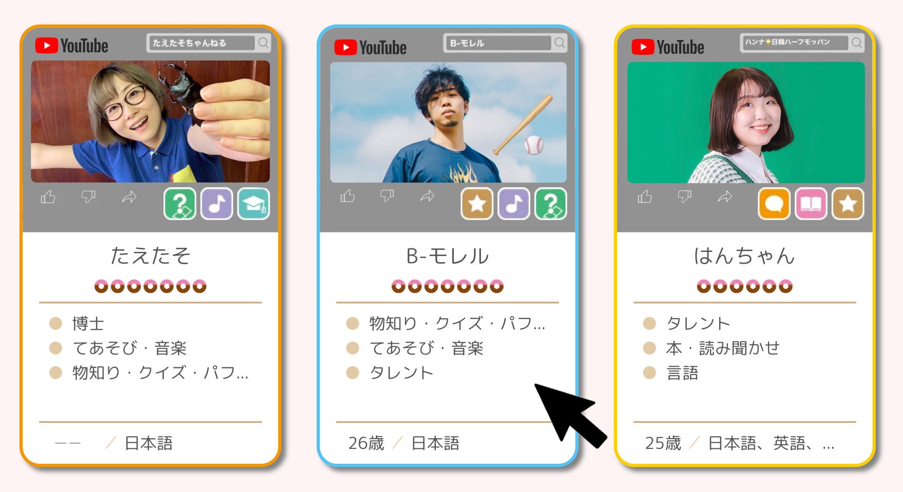 韓国爆食YouTuber/ TikToker「ハンナ 日韓ハーフモッパン 」/ K-POPを一緒に歌ったり、韓国グルメやスイーツ最新情報の話題など、小中学生に人気。